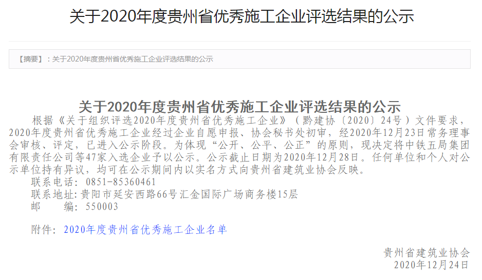貴州省貴州省優(yōu)秀施工企業(yè)名單